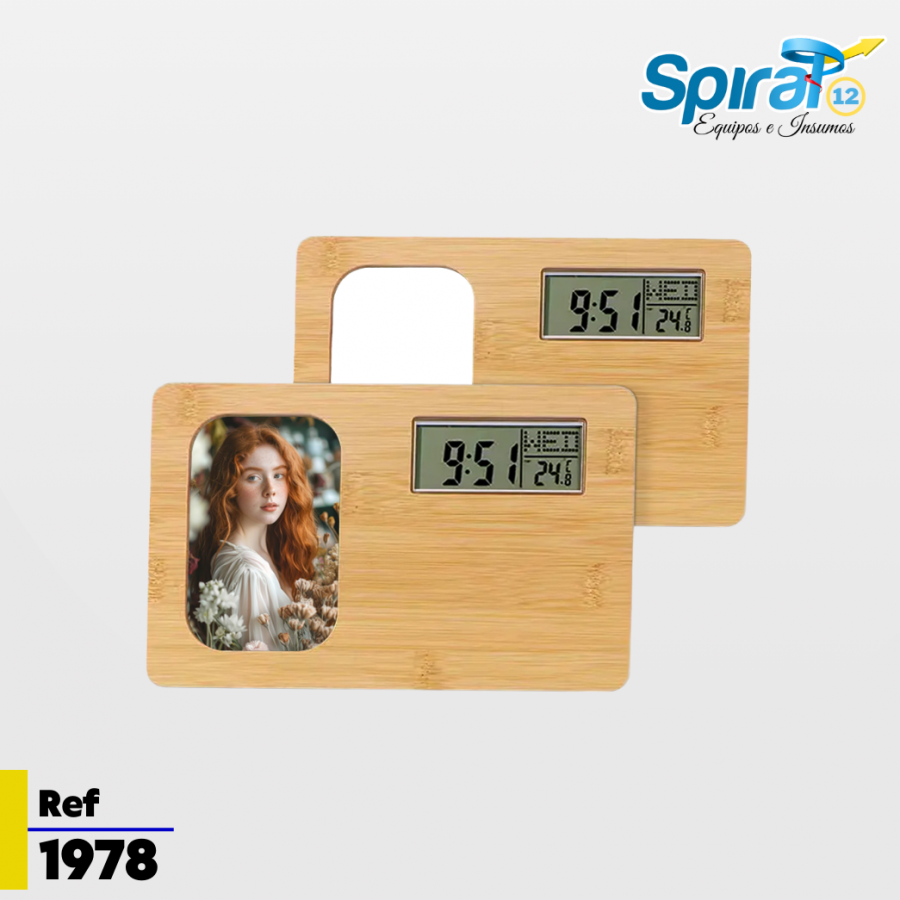 Reloj Digital De Bambu Con Marco Fotográfico Sublimable